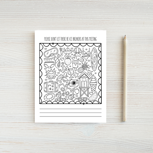 Please Don't Let There Be Icebreakers At This Meeting Doodle Notepad- Summer Theme